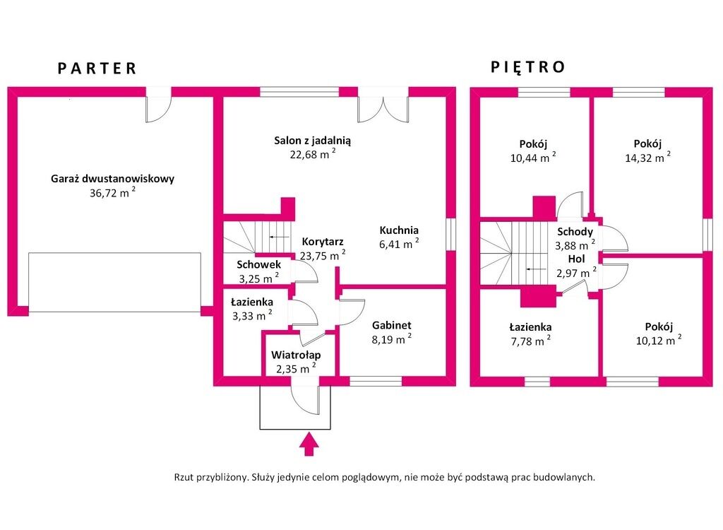 * Garaż: dwustanowiskowy - 36,72 m²